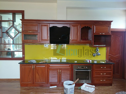 Kính màu ốp bếp không chỉ tạo không gian độc đáo, ấn tượng cho phòng bếp mà còn khiến căn phòng trở nên sáng và có điểm nhấn hơn. Với kính ốp bếp màu vàng chanh, phòng bếp nhà bạn sẽ không còn đơn điệu, tẻ nhạt nữa mà thay vào đó là sự đẹp mắt, cuốn hút đến bất ngờ.