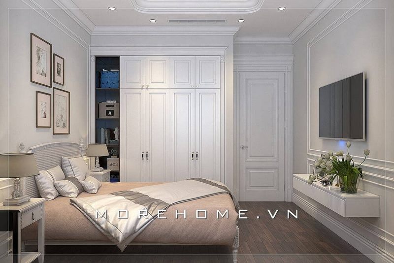 Thiết kế phòng ngủ hiện đại và ấn tượng, gam màu trắng chủ đạo mang lại cảm giác nhẹ nhàng thư thái hơn